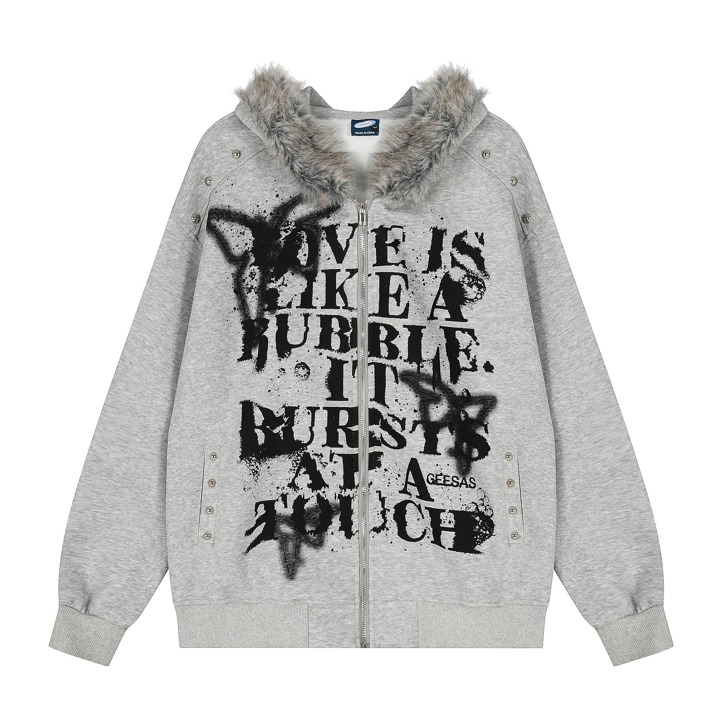 Graffiti Print Faux Fur | Zip Up Hoodie